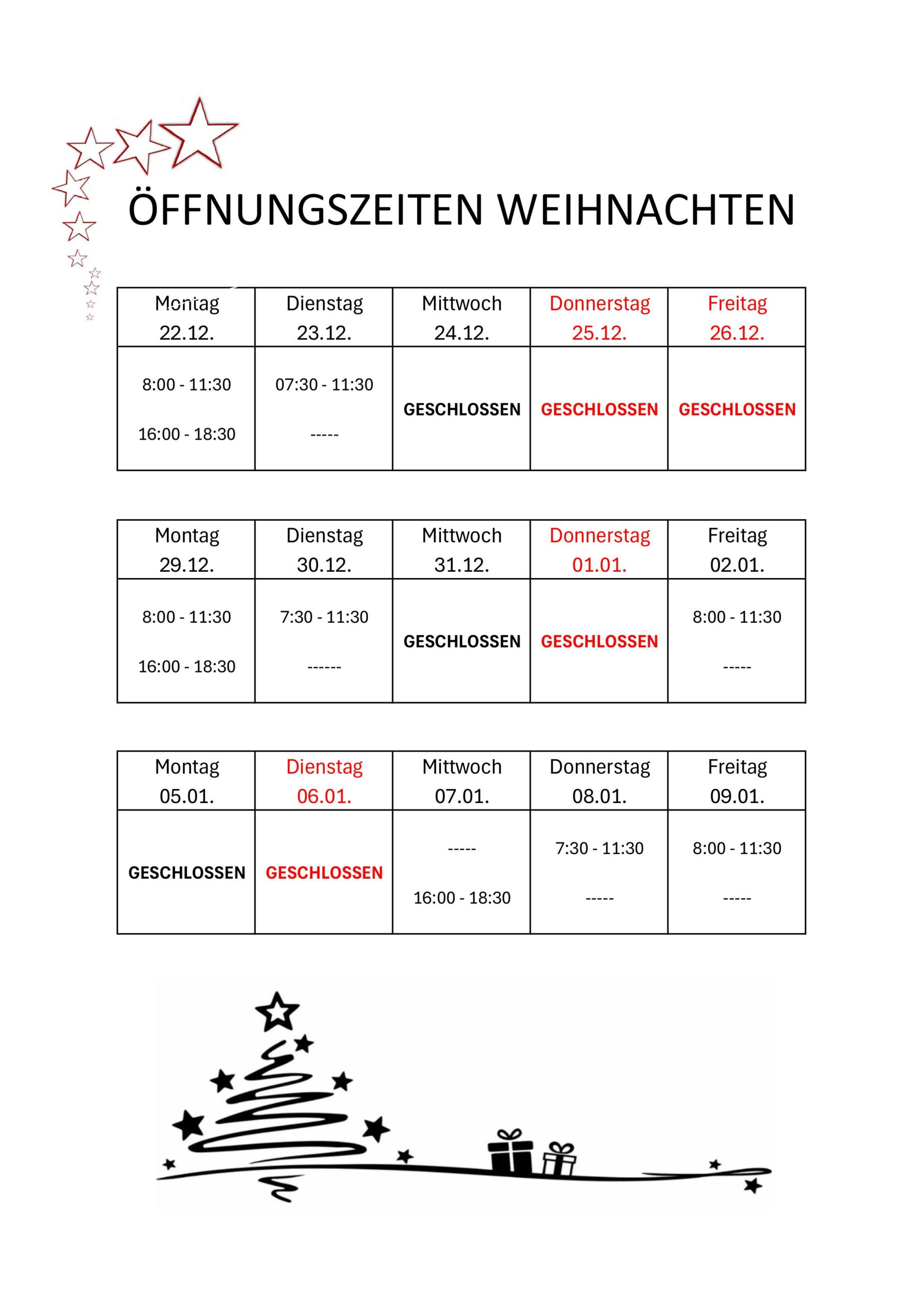• Donnerstag: 7.30 bis 10.00 Uhr